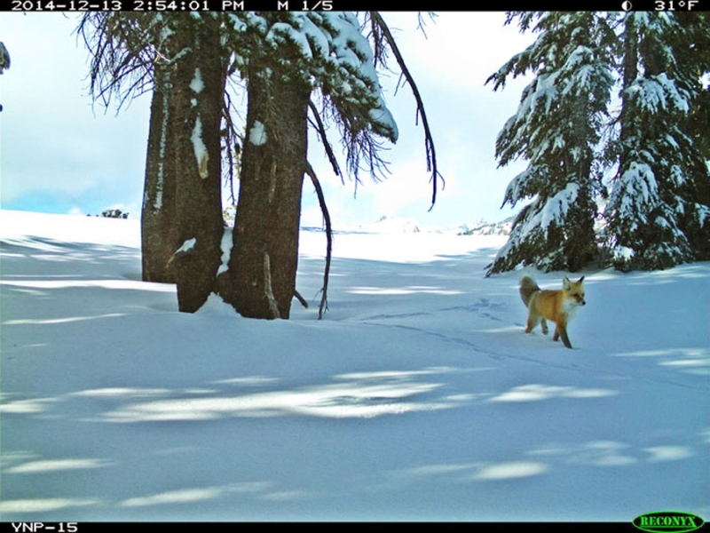 Uma raposa vermelha da Serra Nevada foi fotografada ontem, por uma câmera sensível a movimentos, no Yosemite National Park, na Califórnia (EUA). Esta foi a primeira vez que biólogos avistaram esse tipo raro de raposa, de cuja espécie devem existir apenas 50 exemplares no continente norte-americano.