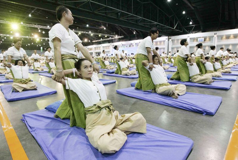 Com a quebra do recorde mundial, que foi alcançado em um ginásio poliesportivo aos arredores de Bangcoc, as autoridades da Tailândia pretendem desvincular a imagem de sua tradicional massagem da prostituição.