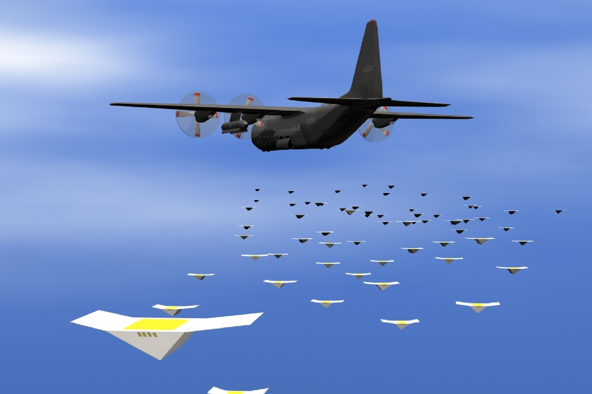 Em um teste de sistemas de 2016 que o Pentágono chamou de "um dos testes mais significativos de sistemas autônomos em desenvolvimento pelo Departamento de Defesa", um enxame de mais de cem microdrones saiu da barriga do caça F/A Super Hornet e voou em conjunto, de acordo com um comunicado de imprensa do Departamento de Defesa, acompanhando de um vídeo.