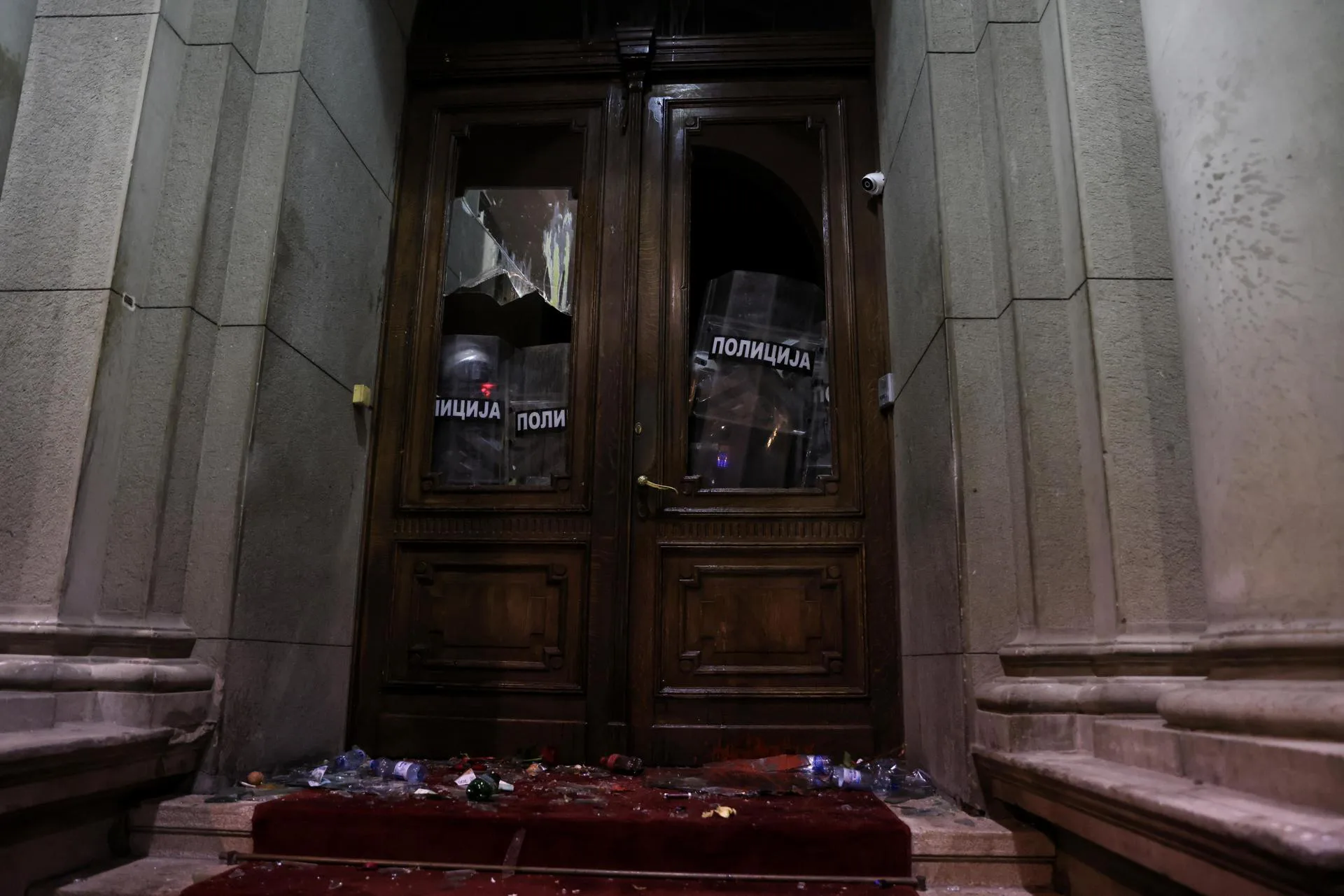 O balanço dos tumultos, nos quais a entrada principal da prefeitura de Belgrado foi depredada, foi divulgado pela polícia nesta segunda-feira (25).