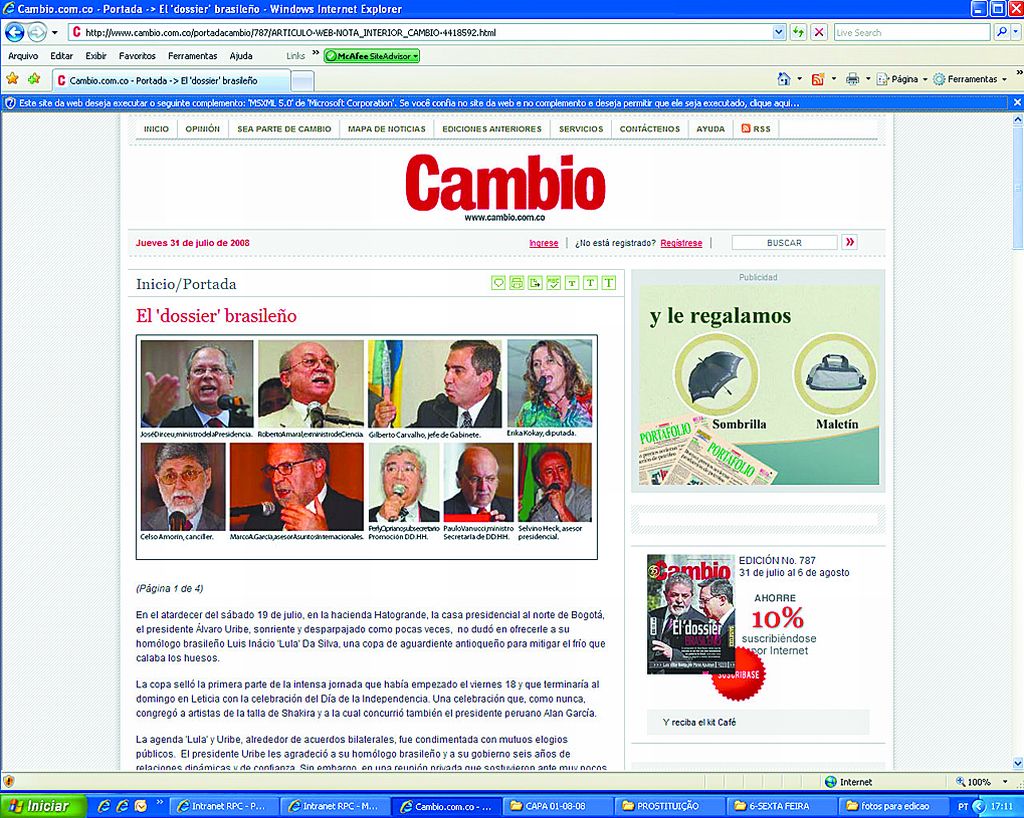 No encontro entre Lula e o presidente Álvaro Uribe de 19 e 20 de julho, na Colômbia, os dois governos já teriam debatido o assunto. "Cada governo dará andamento a essa informação (da forma que julgar conveniente) para estabelecer as investigações que se façam necessárias", disse o chanceler colombiano, Jaime Bermúdez.