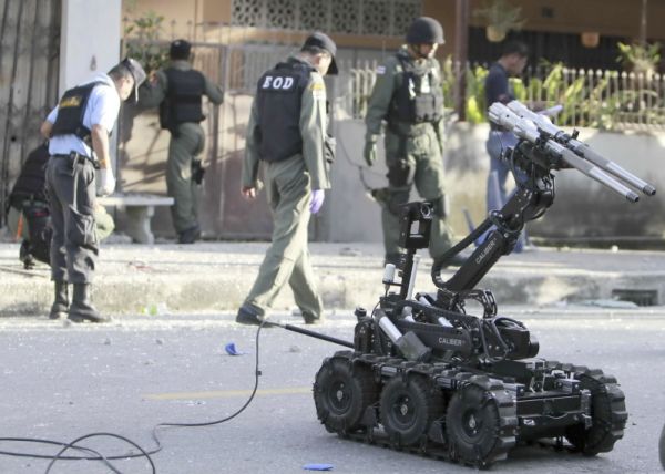 Na Tailândia, forças de segurança utilizam um robô antibomba para investigar um local onde ocorreu uma explosão , na província de Yala. Dois policiais ficaram feridos após o incidente. De acordo com as autoridades, a suspeita é que o ataque tenha sido provocado por militantes islâmicos.