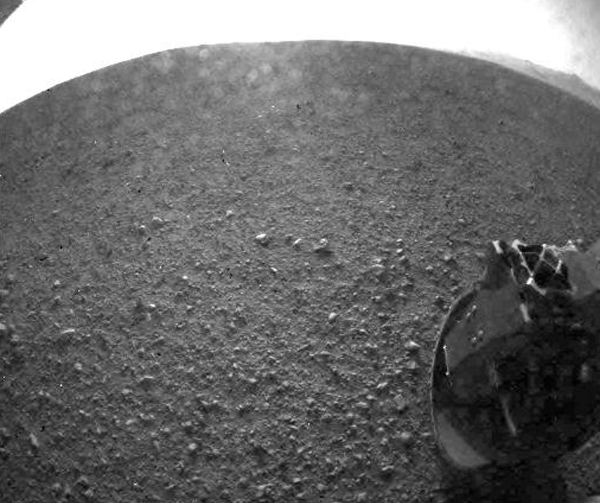 As primeiras imagens enviadas pelo Curiosity foram em preto e branco, com uma resolução de 256 pixels, e mostram uma porção do solo e uma das rodas do artefato.