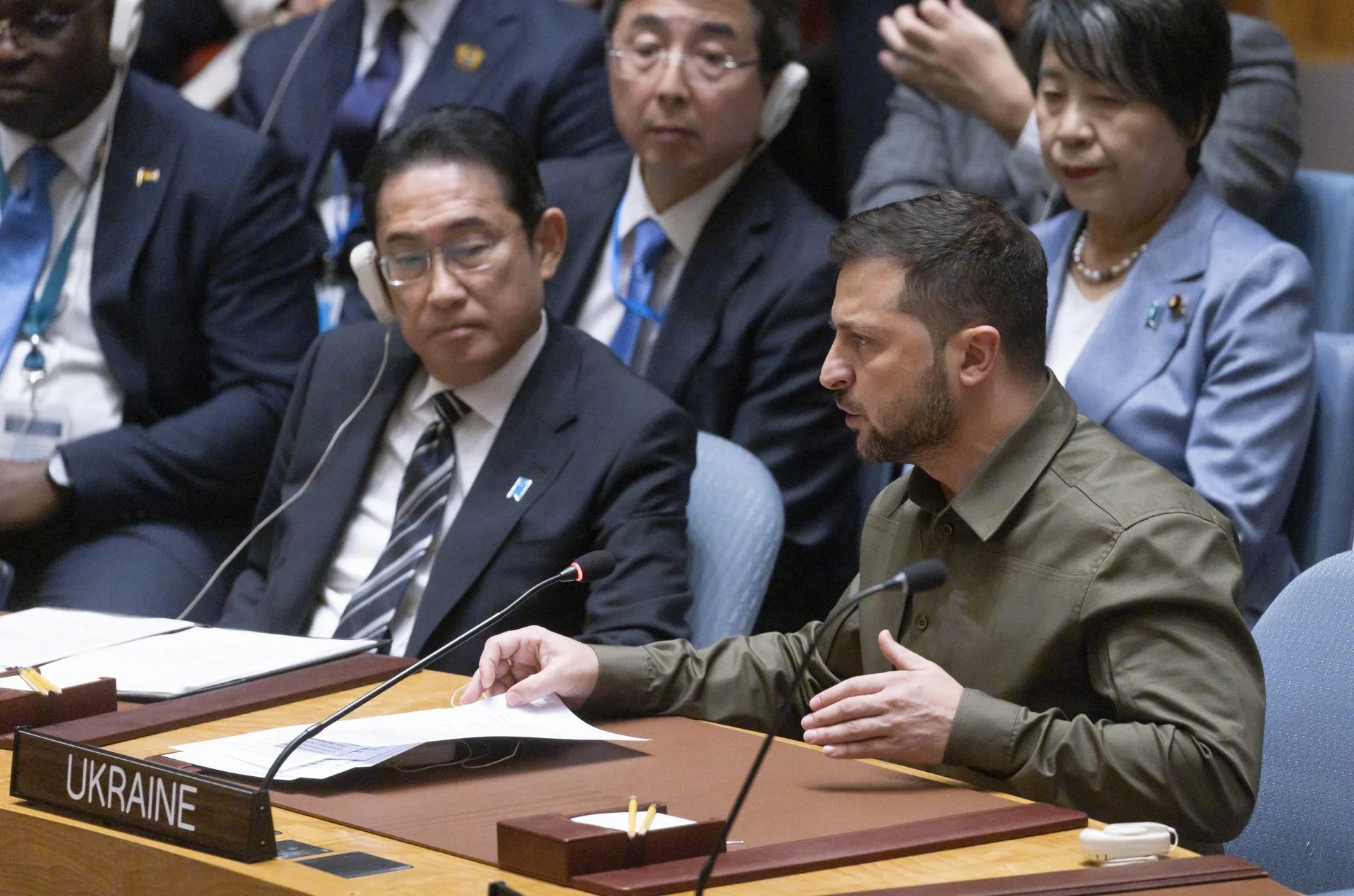 No seu pronunciamento, Zelensky pediu que seja derrubado o poder de veto que a Rússia, como um dos cinco membros permanentes, tem no Conselho de Segurança, o que tem impedido a aprovação de resoluções condenando a guerra.