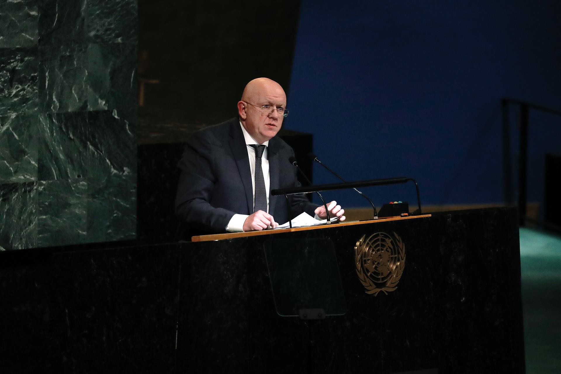 O embaixador russo nas Nações Unidas, Vasily Nebenzya, repetiu o argumento de que seu país está atuando na Ucrânia em defesa de uma população cujos direitos estão sendo pisoteados e garantiu que os referendos foram realizados com todas as garantias.