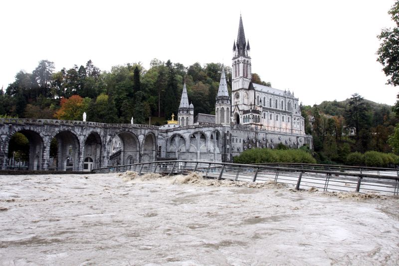 Frente à Cova de Masabielle, onde, segundo a religião católica, a Virgem apareceu a Bernadette Soubirous, há aproximadamente um metro de água, e na avenida do Paradis, onde se concentram os hoteis dos peregrinos, às margens do rio Gave de Pau, 80 cm.