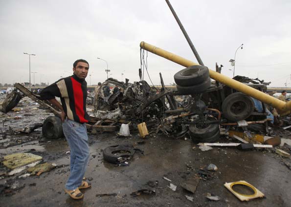 Pelo menos 112 pessoas morreram em três explosões que aconteceram no mesmo momento, no prédio do Ministério do Trabalho, em um tribunal perto da fortificada Zona Verde de Bagdá e perto do prédio do novo Ministério das Finanças (o antigo foi destruído em outro ataque em agosto). Um hora depois, ocorreu a quarta explosão no bairro sunita de Dora, que deixou 3 policiais e 12 civis mortos. No leste de Bagdá, a quinta explosão aconteceu perto da Faculdade de Tecnologia, matando um civil que passava pelo local e ferindo outros quatro.