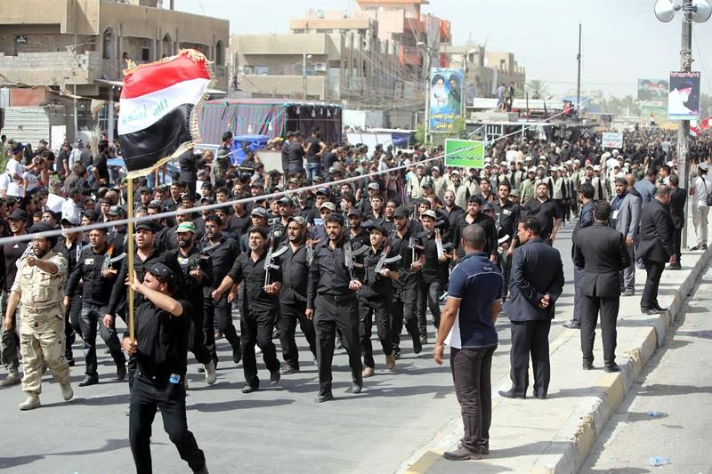 No entanto, em resposta à ocupação da fronteira, milhares de xiitas fortemente armados desfilaram por várias cidades iraquianos neste sábado. Em Bagdá, cerca de 20 mil homens equipados com fuzis, lançadores de mísseis e metralhadoras marcharam pela cidade. Os desfiles foram encenados por seguidores do clérigo xiita Muqtada al-Sadr, que já liderou lutas contra tropas norte-americanas e foi responsabilizado por assassinatos em massa de civis sunitas durante o derramamento de sangue sectário, em 2006 e 2007.