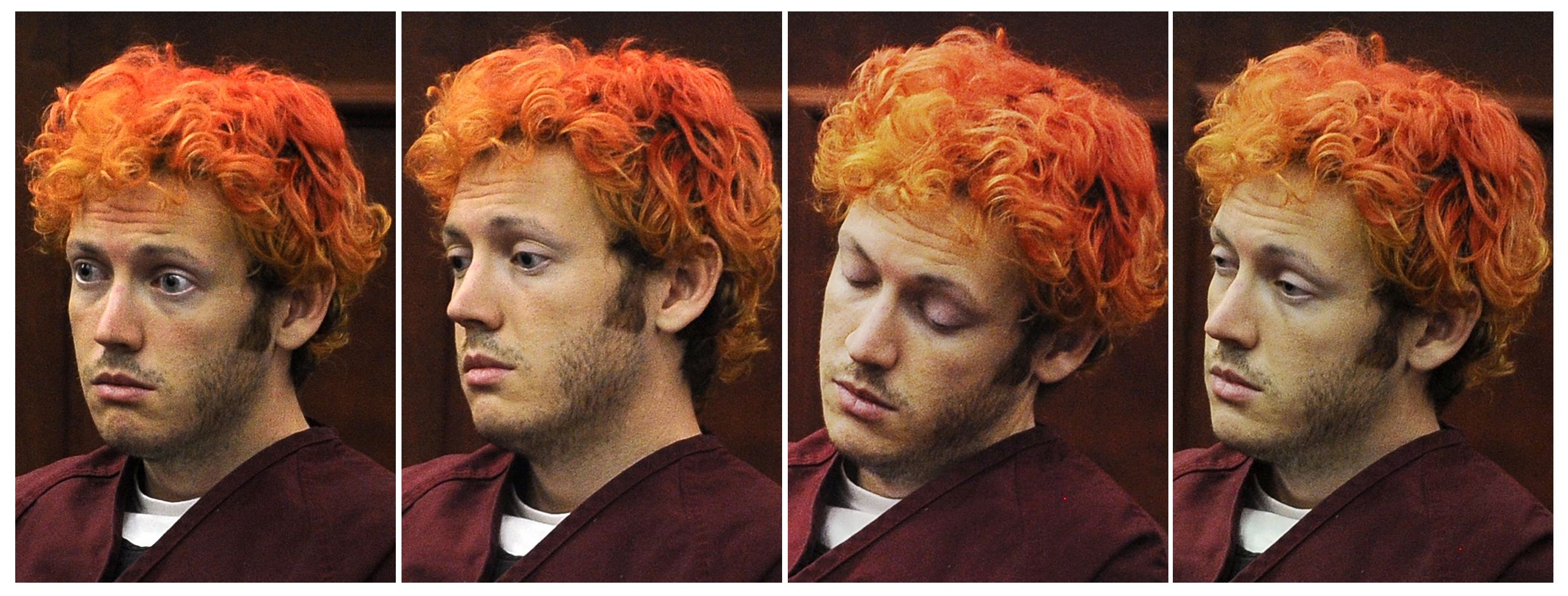 Holmes, segundo a polícia, entrou na pré-estreia do filme "Batman: O Cavaleiro das Trevas Ressurge", num shopping de Aurora (Colorado), usando máscara antigás e colete à prova de balas. Ele acionou uma cápsula de gás na sala e, munido de três armas, começou a atirar indiscriminadamente, matando 12 espectadores - inclusive uma menina de 6 anos - e ferindo outros 58, alguns com gravidade.
