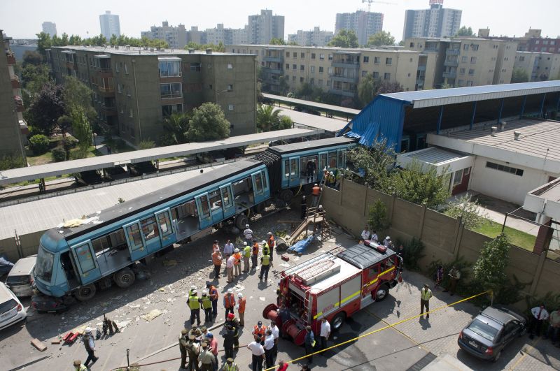 Equipe da companhia de metrô, bombeiros e policiais inspecionam os trilhos após o acidente que ocorreu ontem em Santiago, no Chile. Um vagão descarrilou enquanto eram realizados testes em uma estação. O metrô não conseguiu parar, bateu contra um edifício e destruiu quatro veículos. Não havia passageiros, o condutor saiu ileso e ninguém ficou ferido.