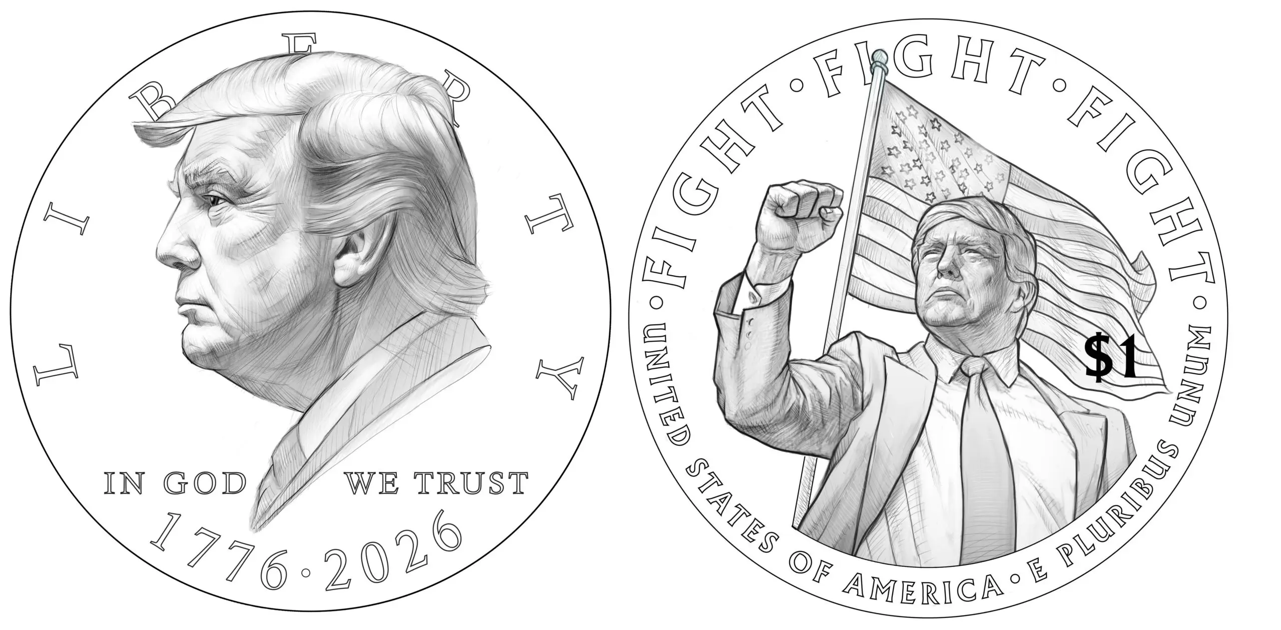 O esboço mostra em um dos lados da moeda Donald Trump retratado de perfil ao lado das frases “Em Deus nós confiamos” e “Liberdade”. No verso, Trump é representado com um dos punhos cerrado e erguido, emoldurado pela frase “Lutar, lutar, lutar”.