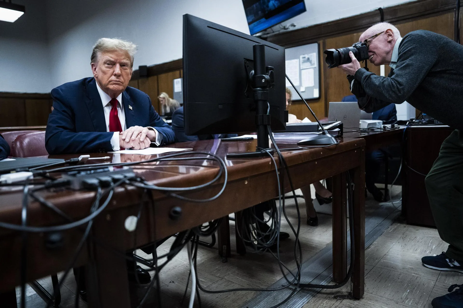 Neste momento, o juiz Juan Merchan, junto ao procurador de Nova York, Alvin Bragg, do Partido Democrata, responsável pelas acusações contra Trump, e a equipe de defesa do ex-presidente estão discutindo o processo durante a sessão do tribunal.