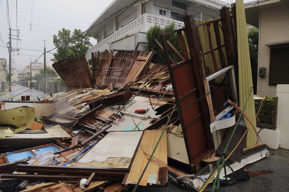 Imagens de televisão mostraram um prédio destruído, fachadas danificadas e árvores arrancadas com a intensificação dos ventos na capital de Okinawa, Naha.