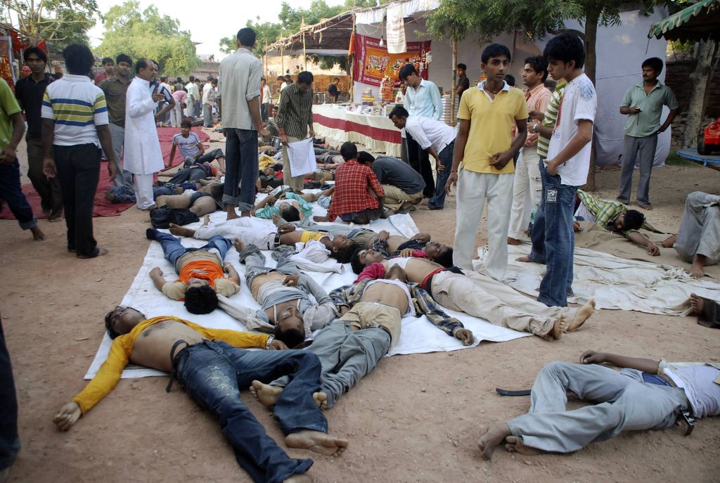 "O estreito caminho ficou bem escorregadio, declarou o funcionário municipal Kiran Soni Gupta, que acompanhou o resgate. Segundo ele, a maioria dos mortos eram homens e não apresentavam contusões visíveis (sinal de que morreram por asfixia no tumulto).