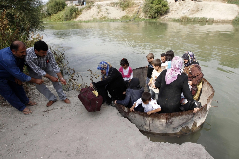 Muitos civis sírios, incluindo mulheres com crianças de colo, fugiram da Síria cruzando o riacho que separa o país da Turquia na região de Azmarin. Moradores da aldeia turca de Hacipasa ajudaram a retirar os refugiados em barquinhos metálicos.