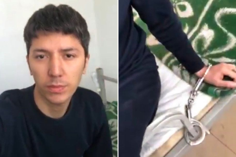 Tornozelos inchados, roupas sujas e preso a uma cama de metal por algemas em um pequeno cômodo. Ao fundo da gravação, é possível ouvir uma mensagem de propaganda, disparada por alto-falantes, que acusa "forças separatistas" de tentarem encorajar os uigures a "acreditar no Islã para se unir".