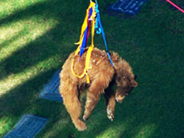 O departamento de proteção animal da região foi chamado para resgatar o urso. O animal recebeu três tranquilizantes antes de ser retirado do alto da árvore.