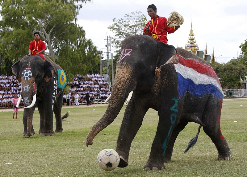 Um carregador passa em frente a um muro decorado com bandeiras dos países participantes da Copa do Mundo 2014, em Calcutá, na Índia