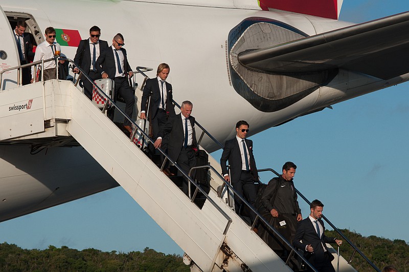 Torcedores esperam pelos jogadores da seleção brasileira no lado de fora do hotel em Goiânia, antes do amistoso contra o Panamá durante a preparação para a Copa do Mundo