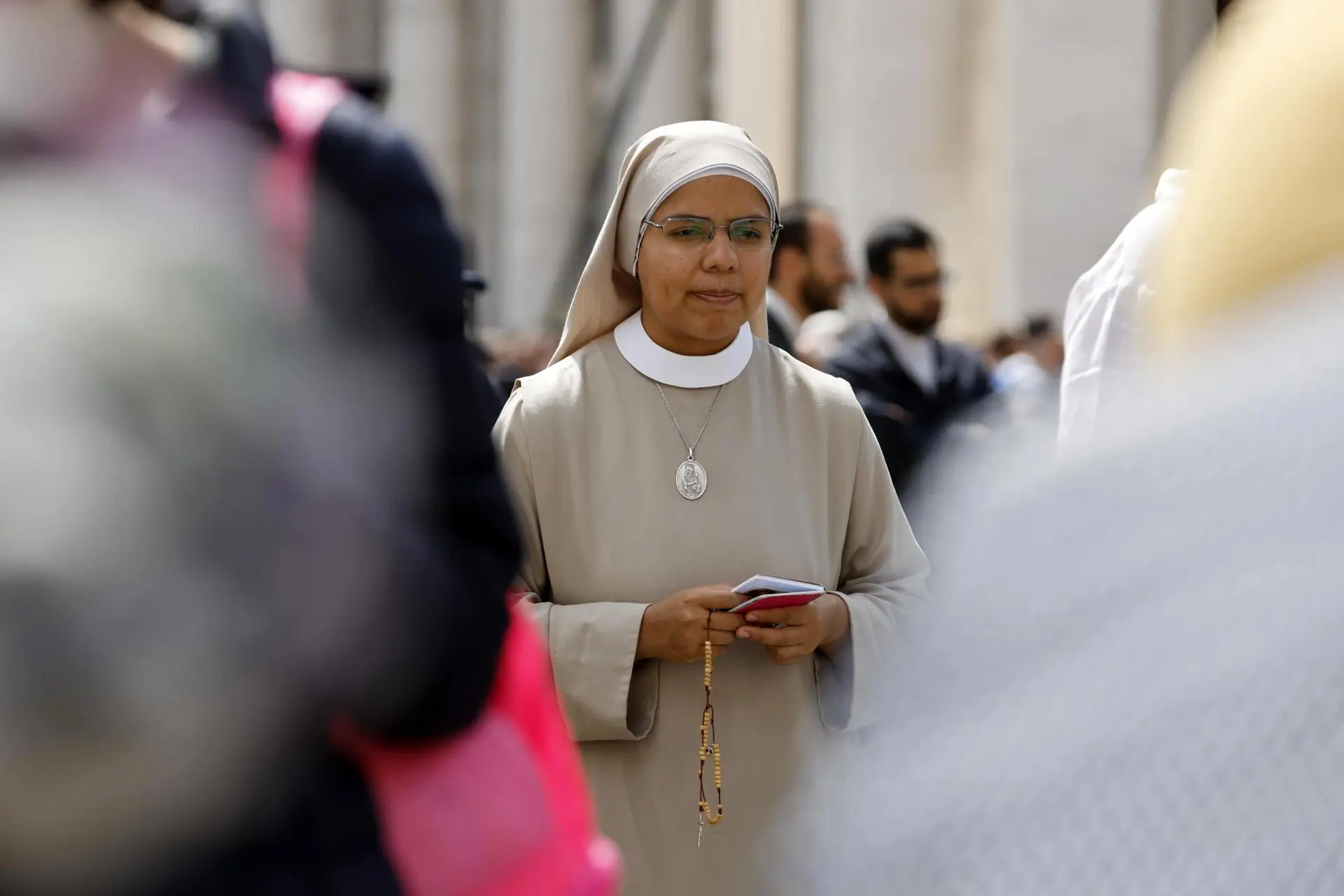 Freiras rezam na Praça de São Pedro no segundo dia do conclave. Crédito: EFE/EPA/RICCARDO ANTIMIANI (Foto: EFE)