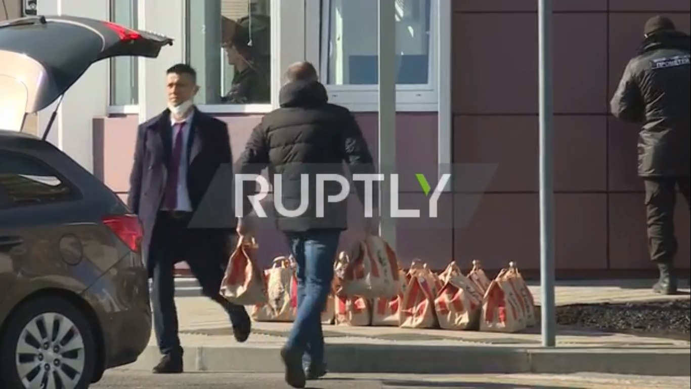 A própria Ruptly destacou a informação: “Uma entrega de comida na entrada do Soluxe Hotel também pode ser vista no vídeo. O entregador retirou mais de dez sacolas de fast food KFC do seu veículo. Os destinatários da comida eram desconhecidos”. O vídeo pode ser visto neste link.
