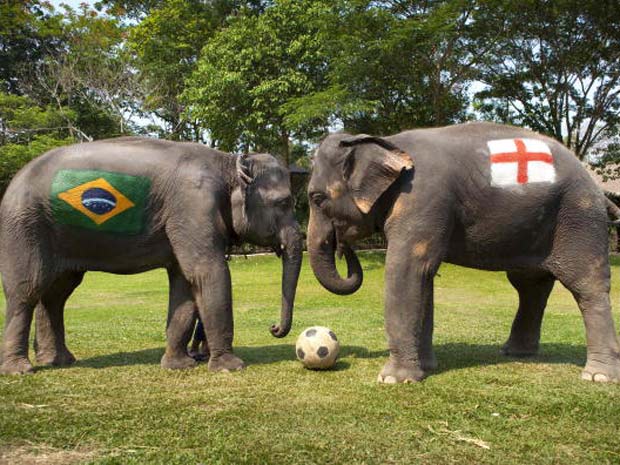 Em ano de Copa do Mundo, o futebol virou diversão em um zoológico de elefantes na Tailândia. Os animais com até três toneladas do Maesa Elephant Camp, em Chiang Mai, a 700 quilômetros da capital Bancoc, foram treinados para entreter os turistas.