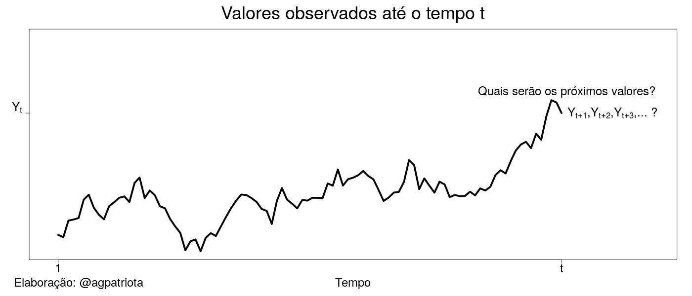 Em algumas áreas, por exemplo em climatologia e economia, um problema adicional ocorre: alguns valores do histórico passado não são observados diretamente e o analista precisa utilizar alguma técnica estatística4 para “adivinhar” os valores da série não observados. Isso embute mais variabilidade no processo e as bandas de confiança tenderiam a ficar mais largas, aumentando assim a incerteza das observações futuras. Caso essa variabilidade não seja levada em conta, as probabilidades e bandas de confiança calculadas não serão confiáveis.
