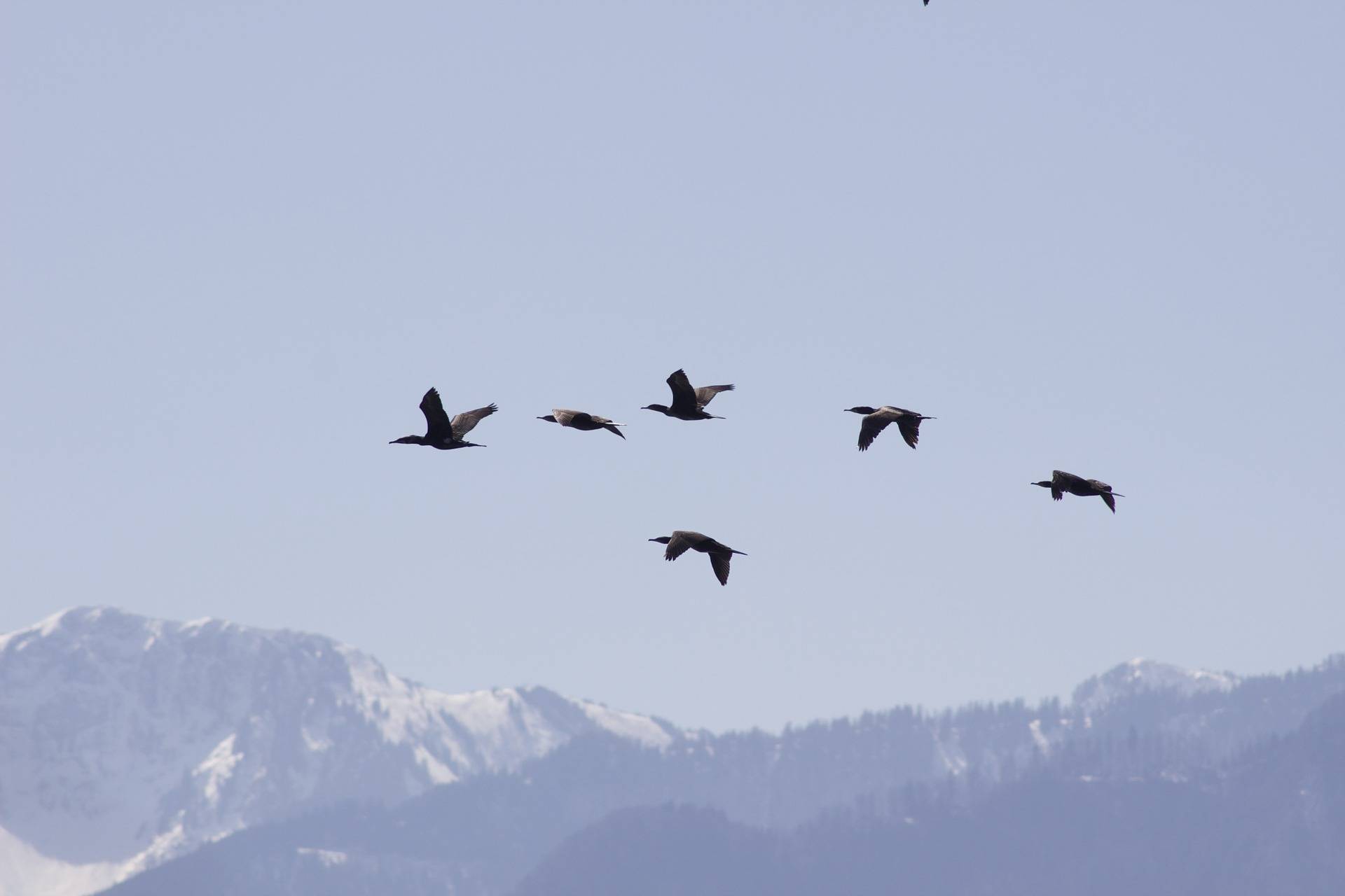 Neste longo voo, a formação do bando é a de um majestoso V, cujo vértice está voltado para frente. Nessa formação geométrica, cada pássaro da frente cria um vácuo para o de trás, rendendo ao grupo quase o dobro do aproveitamento com o mesmo esforço.