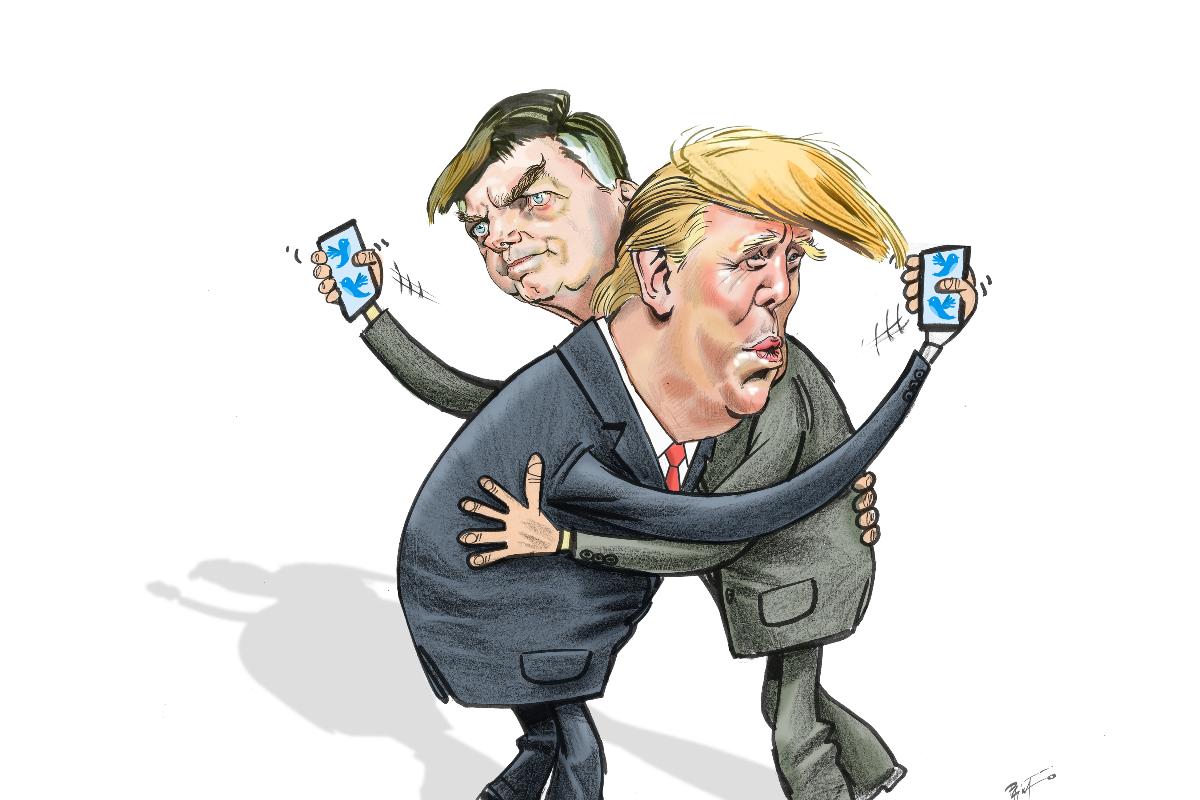 Acordos entre Brasil e Estados Unidos e bastante babação de ovo marcaram o segundo dia do presidente Jair Bolsonaro (PSL) no país. Depois do jantar de domingo na embaixada brasileira, do qual participou devidamente acolitado por Olavo de Carvalho e Steve Bannon, Bolsonaro participou na segunda (18) de um evento na Câmara de Comércio dos Estados Unidos ao lado de seus ministros e de empresários de primeiro escalão do país. Hoje (19) deve se encontrar com o presidente Donald Trump.