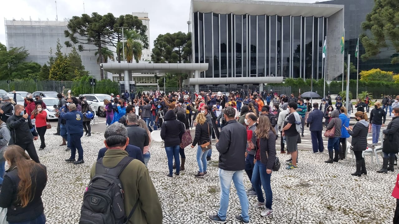 Os professores e funcionários da rede pública de educação que passaram a noite no prédio da Assembleia Legislativa do Paraná (Alep) deixaram o local no fim da manhã desta quinta-feira (19). De lá, os cerca de 75 manifestantes, segundo a APP-Sindicato, que representa a categoria, juntaram-se a outro grupo que pretende ficar em vigília em frente ao Palácio Iguaçu, sede do Executivo estadual.