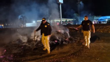 O protesto neste ponto começou na manhã da segunda-feira (7). A Polícia Rodoviária Federal do Paraná (PRF-PR) informa que tem efetivo na área e trabalha para a liberação da estrada.