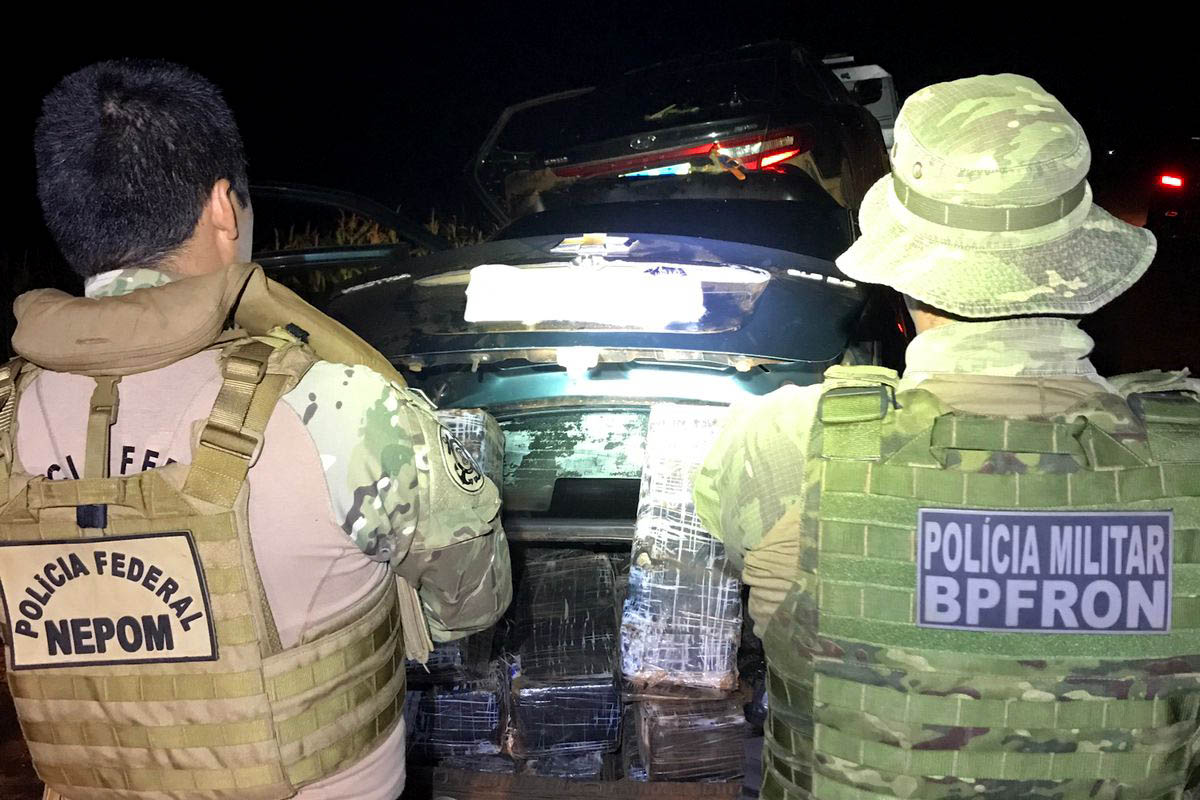 Na vistoria aos veículos, a polícia encontrou 1.103 quilos de substância análoga à maconha. Os dois veículos foram encaminhados à Polícia Federal de Guaíra.