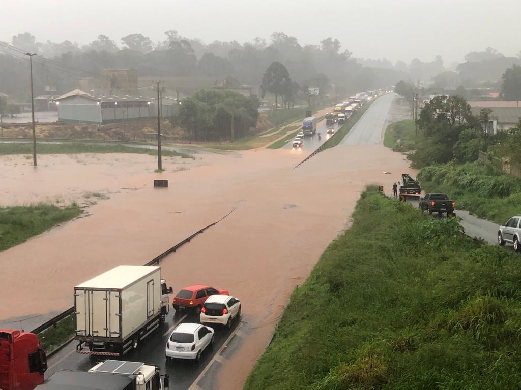 A BR-376, em Ponta Grossa (Campos Gerais do Paraná) ficou alagada e teve que ser interditada totalmente em alguns trechos nesta quinta-feira (9). A interdição durou cerca de duas horas depois que um temporal de grandes proporções atingiu a cidade e região no final da tarde. A informação é da Polícia Rodoviária Federal (PRF).