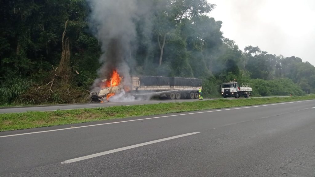 Mais um problema na BR-277 entre Curitiba e o Litoral do Paraná. Depois do afundamento do asfalto, ocorrido no começo da última semana, agora um caminhão bitrem pegou fogo. A ocorrência foi por volta das 16 horas deste domingo (12), na altura do km 23, em direção às praias, informou a Polícia Rodoviária Federal (PRF). Ainda não se sabe as causas do incêndio. Ninguém ficou ferido.