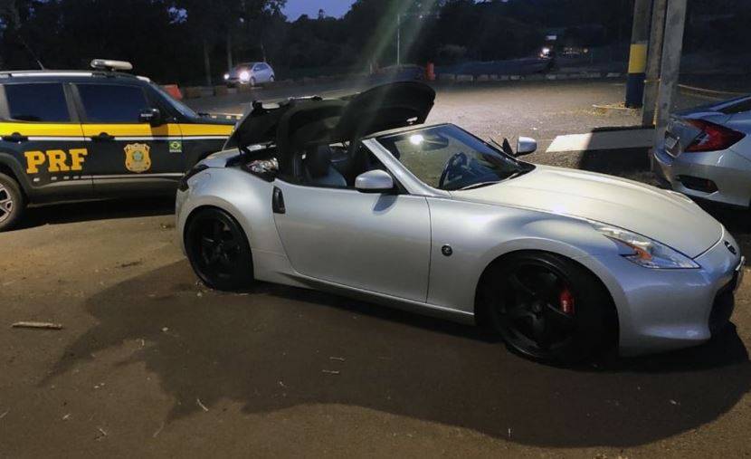 Um Nissan 370 Z conversível, avaliado em aproximadamente R$ 170 mil, foi apreendido no final de semana pela Polícia Rodoviária Federal (PRF) em um trecho da BR- 277 em Céu Azul, no Oeste do Paraná. O esportivo estava lotado de cosméticos importados ilegalmente do Paraguai.