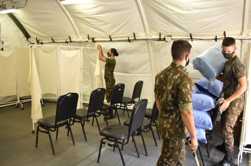 Com 100% de ocupação, o Hospital Geral do Exército (HGE), no bairro Batel, em Curitiba, montou estrutura de campanha para atender pacientes com Covid-19 neste que é o pior momento da pandemia no Paraná. A estrutura trazida do Rio de Janeiro começa a funcionar quinta-feira (18). O HGE atende cerca de 60 mil pessoas entre militares do Exército, Aeronáutica e Marinha e seus dependentes dos estados do Paraná e Santa Catarina. Com 144 metros quadrados, o hospital de campanha do Exército terá leitos de enfermaria, dois consultórios e posto de triagem. Também foram entregues respiradores e monitores para ativar mais quatro leitos de UTI no prédio central do Hospital Geral.
