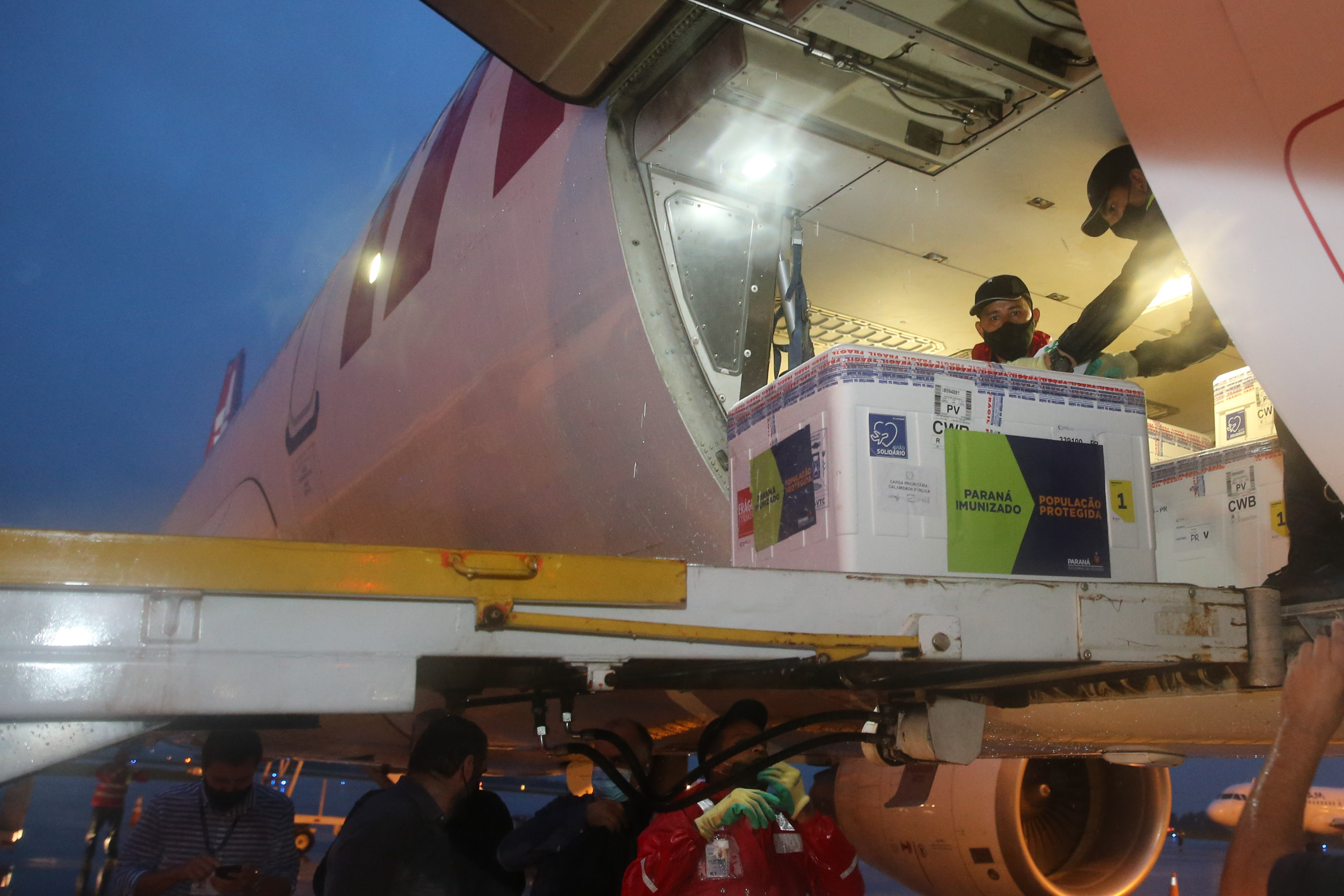 Dois voos com 166,5 mil doses de vacina contra a Covid estão confirmados para o Paraná nas próximas 24 horas. O primeiro voo, com 79.560 doses da Pfizer/BioNTech, chega ao aeroporto Afonso Pena nesta quarta-feira (1º) às 15h30. Na quinta, às 20h05, chegam mais 87 mil doses da AstraZeneca/Fiocruz.