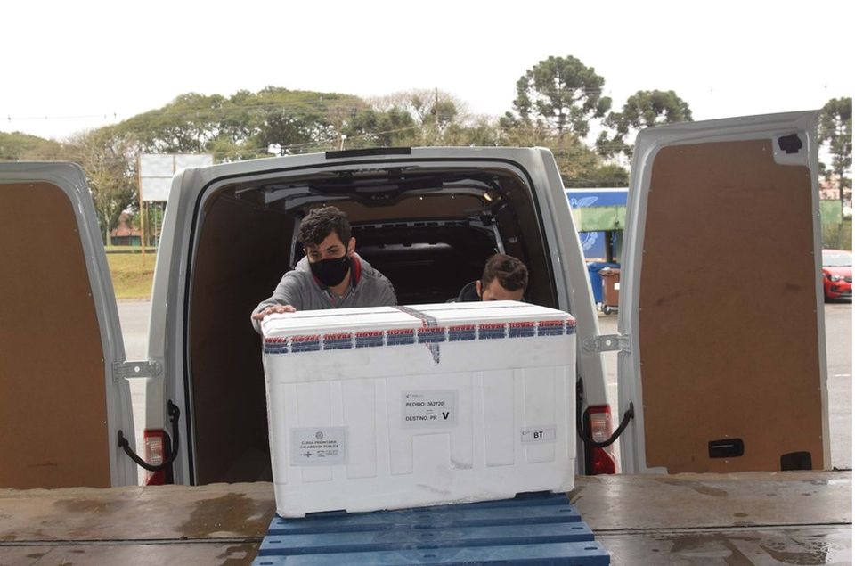 O Paraná recebe nesta segunda-feira (16) um novo lote com 311.780 vacinas da Covid-19. A primeira parte da remessa, com 127.530 doses da Pfizer, chegou ao Aeroporto Afonso Pena, na Região Metropolitana de Curitiba, já de manhã. A segunda parte, com 184.250 vacinas da Astrazeneca, está previsto para as 20h05. As vacinas da Pfizer são 77.220 para primeira dose e 50.310 de segunda. As da Aztrazeneca são todas para segunda dose.