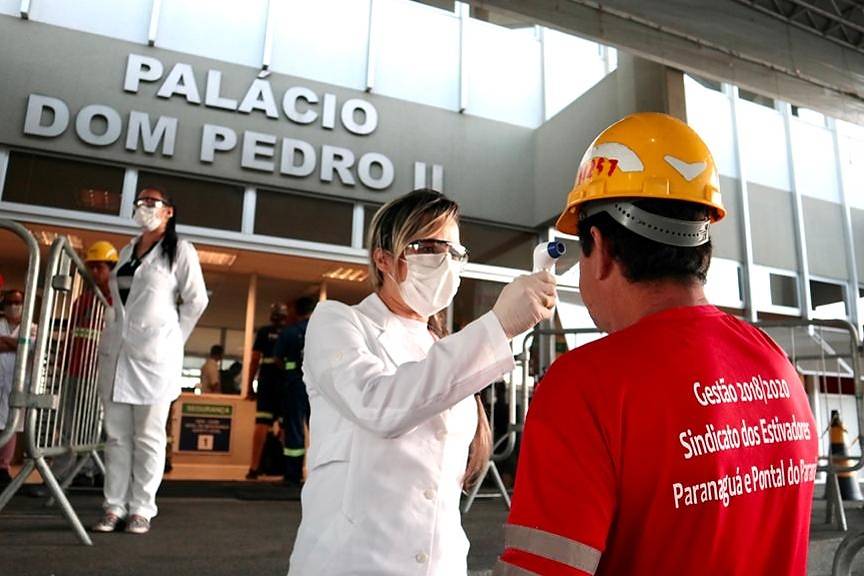 Caminhoneiros e trabalhadores portuários agora passam por uma estrutura de triagem e medição da temperatura corporal antes de entrarem no Porto de Paranaguá. Casos que apresentarem temperatura superior a 37,8°C, serão encaminhados para tendas de atendimento para investigação de sintomas da Covid-19. As estruturas de atendimento foram montadas no Pátio de Triagem de Caminhões e no acesso ao cais Dom Pedro II e funcionam 24 horas. O Porto de Paranaguá mantém o funcionamento normal, mas reforçou as medidas para evitar o contágio pelo coronavírus.