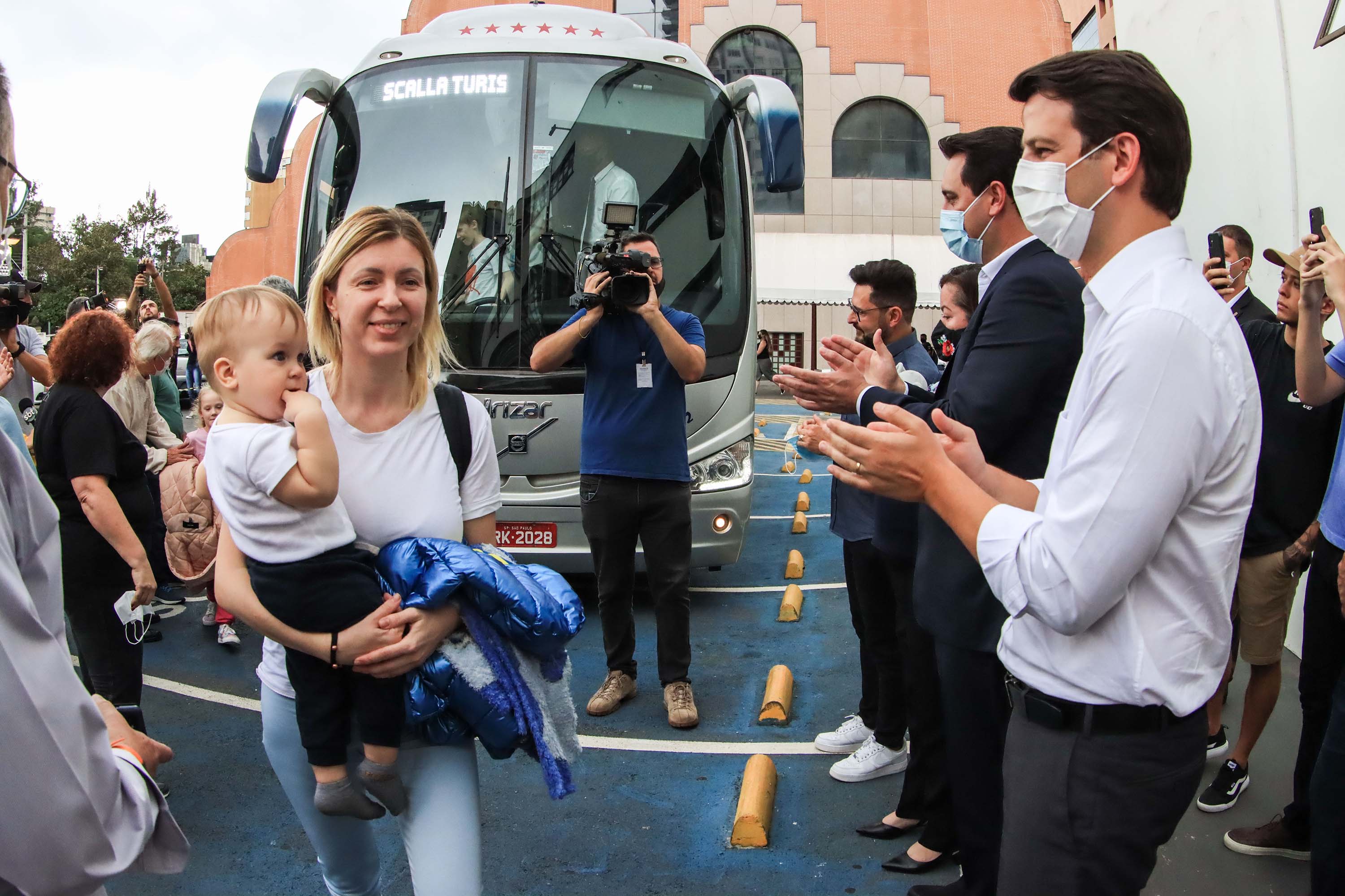 Chegou nesta sexta-feira (19) ao Paraná um grupo de 29 ucranianos, em sua maioria crianças e mulheres, refugiados da zona de conflito no leste europeu. Após permanecer por dois dias em Curitiba, os refugiados seguirão para Guarapuava, onde ficarão alojados de modo temporário até que possam se mudar para Prudentópolis, onde passarão a morar em casas que estão em processo de construção.