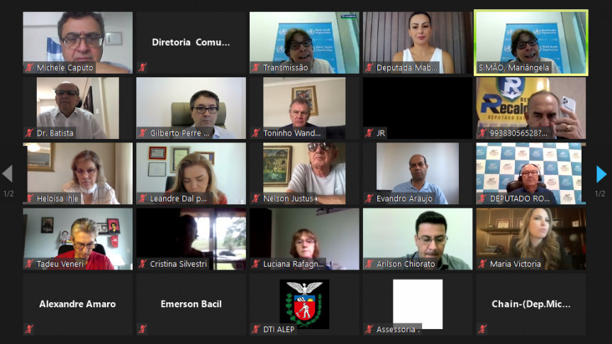 A reunião remota contou ainda com a participação de Mariângela Batista Galvão Simão, médica sanitarista curitibana e diretora-assistente da área de medicamentos e produtos de saúde da Organização Mundial da Saúde (OMS). Mariângela, que participou da reunião de Genebra, na Suíça, é considerada atualmente a médica brasileira mais experiente que atua internacionalmente no combate ao coronavírus.