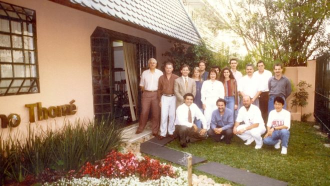 Geninho Thomé, fundador da empresa, conta que nos anos 1990 o cuidado com a saúde bucal era bem diferente do cenário atual. Sensibilizado com a dificuldade de acesso de implantes à população, ele começou a estudar formas de dar mais acesso a essa tecnologia e garantir a qualidade do produto. “Em um desses cursos, realizado nos Estados Unidos, um dos países com estudos mais avançados sobre o tema, ganhei de um professor uma barra de titânio. Seria com ela que começaria a colocar meu sonho em prática”, lembrou.