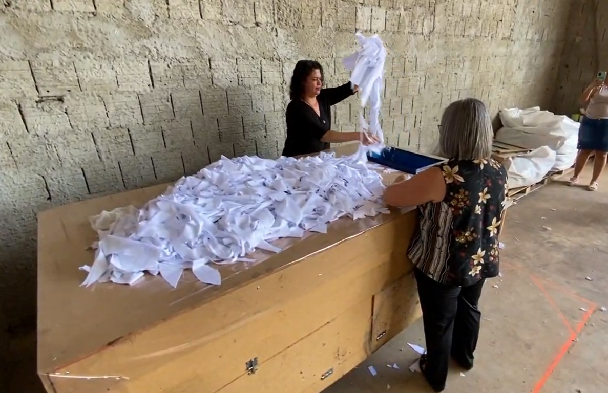 “Eles financiaram a compra das máquinas que precisávamos para desfibrar os tecidos, então conseguimos iniciar o trabalho”, relata a professora, explicando que o objetivo é atuar em três focos de sustentabilidade: ambiental, social e econômica.
