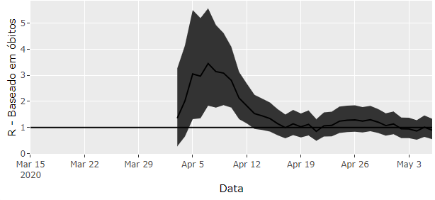 Conduzido pelos professores do departamento de estatística da UFPR Wagner Hugo Bonat e Paulo Justiniano Ribeiro Junior, em parceria com o setor de epidemiologia do Hospital de Clínicas de Curitiba, o monitoramento da taxa de reprodução do vírus no Paraná mostra que, após um pico de 3,45 em 7 de abril, o número vem caindo. Chegou ao seu menor índice em 21 de abril (0,85) e, em 6 de maio, último dia registrado até agora no sistema, que observa um intervalo de cinco dias para o registro de casos e óbitos, apresentava taxa de 0,89.