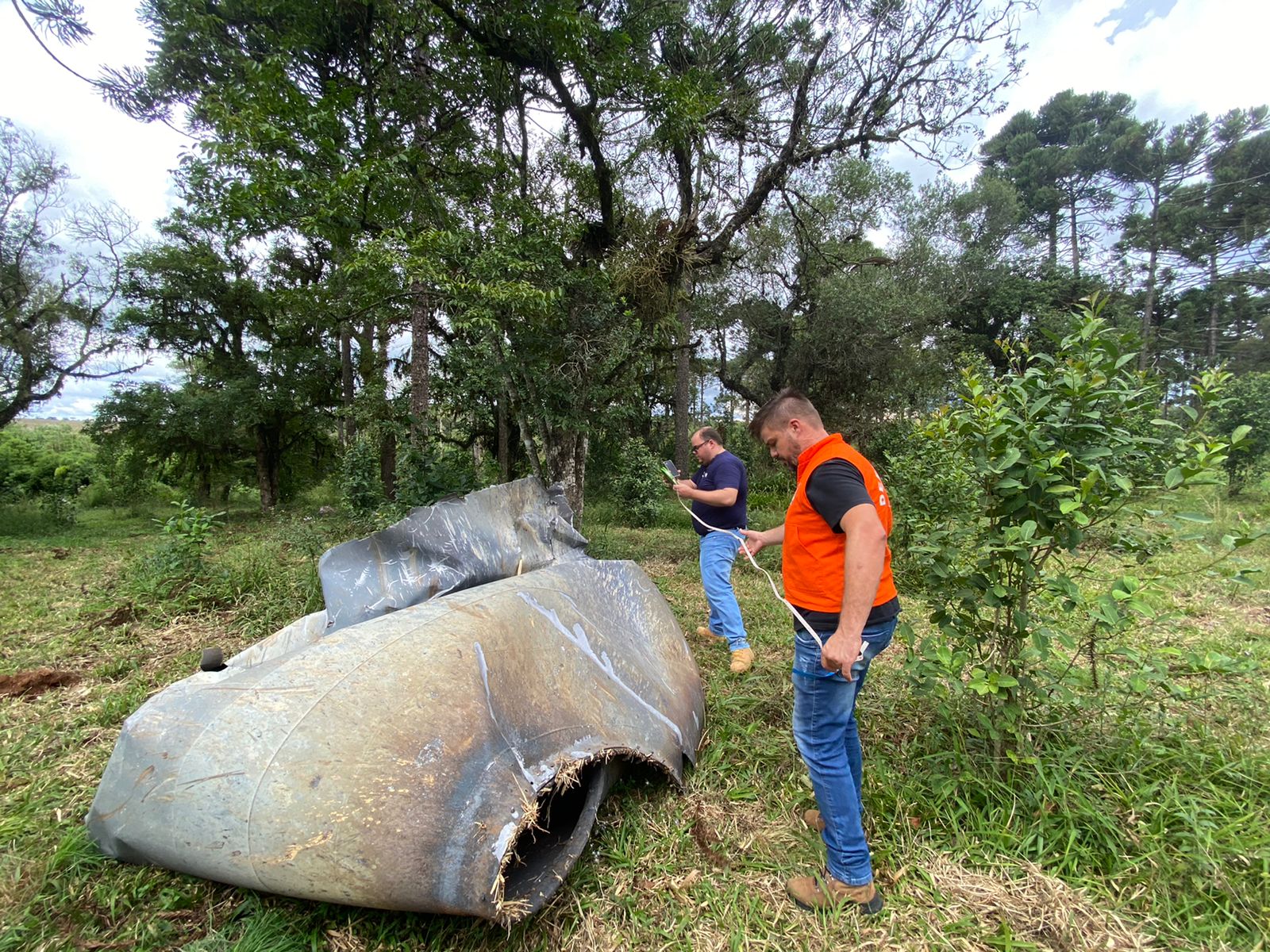 Uma equipe da Agência Espacial Brasileira esteve na tarde 18 de março em uma propriedade rural de São Mateus do Sul investigando o que tudo indica ser parte de um foguete que caiu na região na semana passada. Moradores da região avistaram uma série de bolas de fogo no céu na madrugada do dia 8 daquele mês – segundo especialistas, esses objetos incendiários eram pedaços de lixo espacial que começaram a pegar fogo ao entrar na atmosfera.