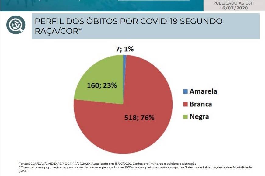 O mapeamento de gênero e idade levou em consideração o total de 1.227 mortes até aqui registradas, enquanto os demais quesitos foram apurados conforme o Sistema de Informações sobre Mortalidade (SIM). "Por isso são dados parciais em relação à planilha de monitoramento", detalha o boletim. São 685 mortes registradas.
