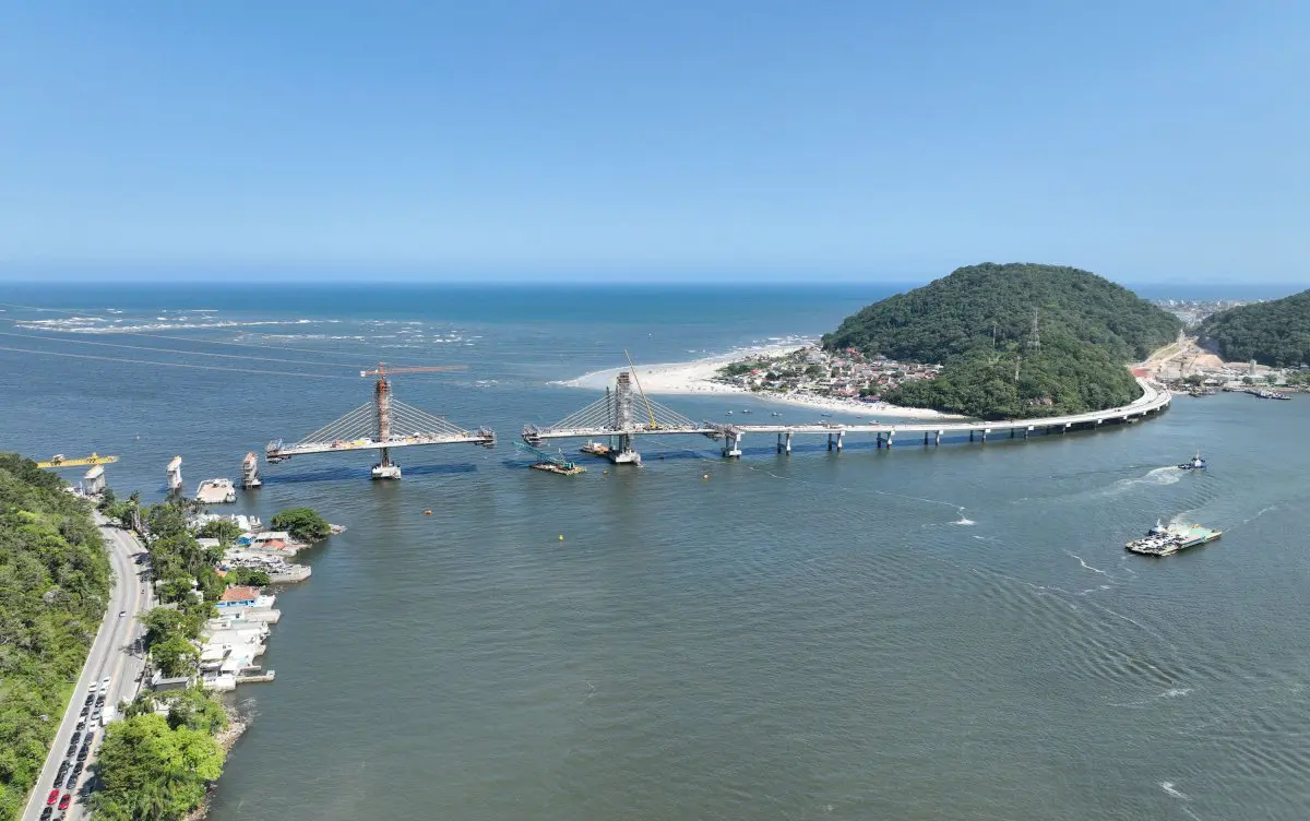 O boletim mais recente da construção da ponte de Guaratuba, divulgado em dezembro, mostra que a obra já passou de 85% de conclusão, o que mantém abril de 2026 como marco para o início da circulação de veículos e pessoas.