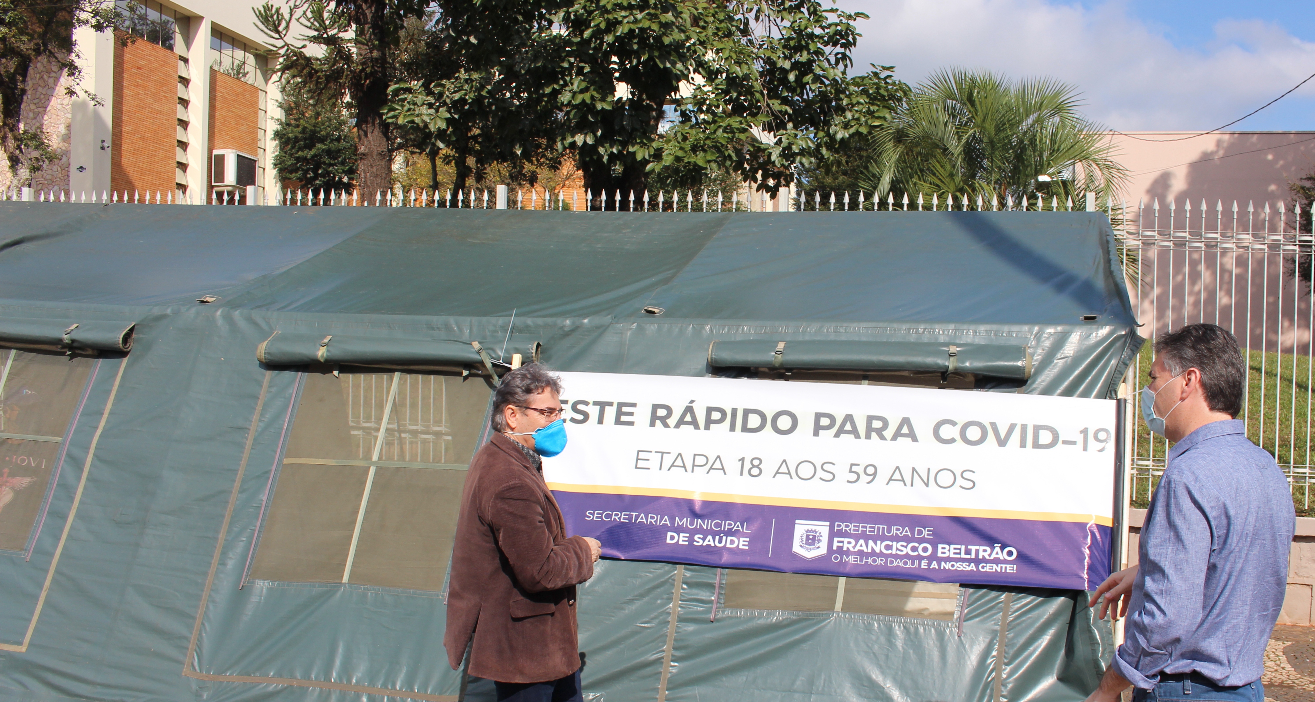 A partir desta quinta-feira (17), a prefeitura de Francisco Beltrão, no Sudoeste do Paraná, oferece à população a possibilidade de fazer um teste rápido (do tipo antígeno) para detecção do coronavírus. Qualquer morador da cidade que tenha entre 18 e 59 anos de idade pode procurar uma das barracas que foram montadas no Calçadão para a realização dos exames. O atendimento será feito de segunda-feira a sexta-feira, das 9h às 17h, e, aos sábados, das 8h30 às 11h30. O resultado sai em 15 minutos. De acordo com a prefeitura, foram comprados 5 mil testes rápidos, mas há possibilidade de adquirir mais, a depender da participação da população. A cidade tem mais de 90 mil habitantes.