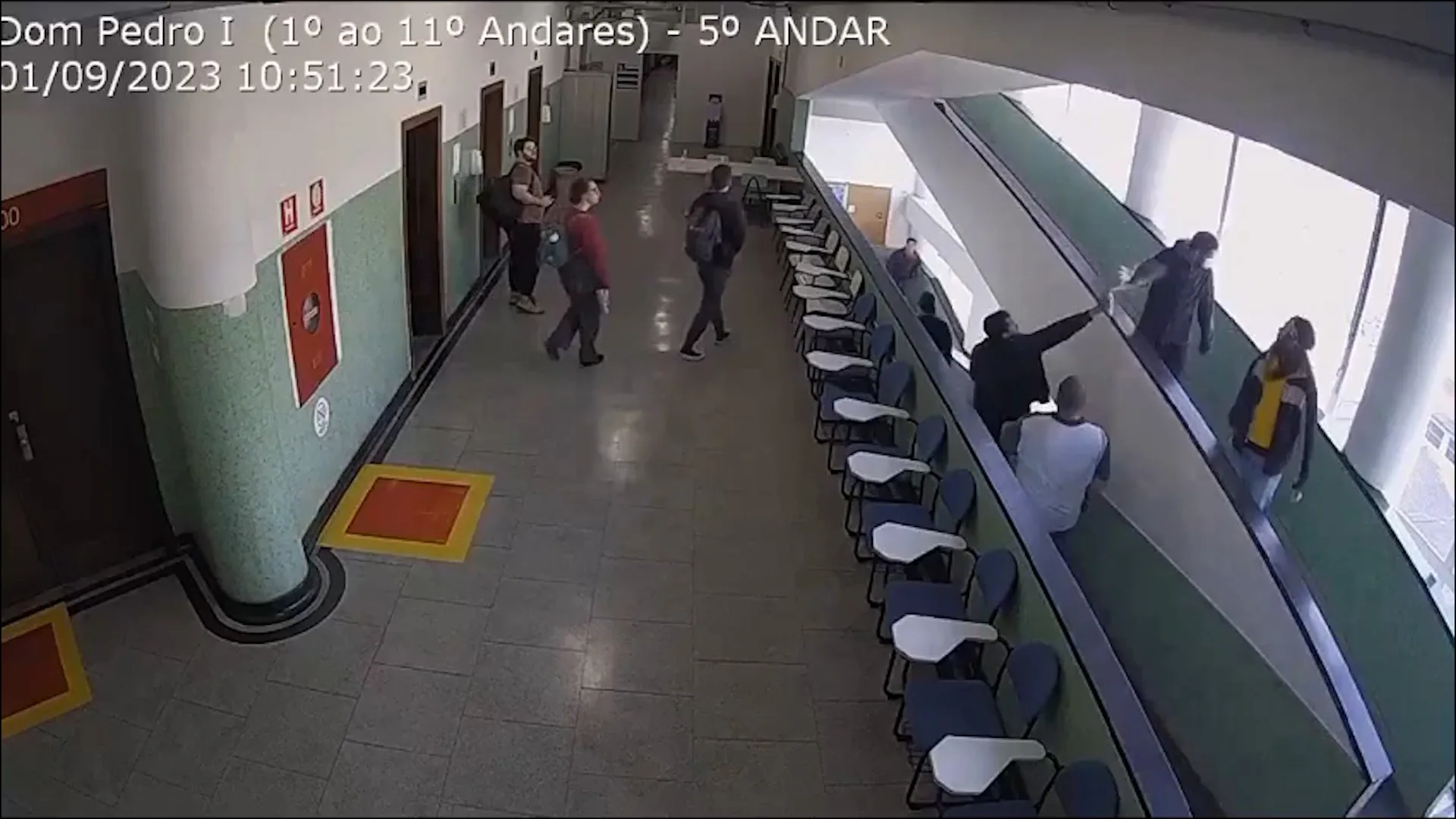Ao saírem do prédio, câmeras de segurança mostram imagens do que seriam os integrantes da iniciativa “Inimigos Públicos” jogando uma espécie de spray no rosto de um dos estudantes. Ao chegarem à rua, afirma a nota, uma aluna da UFPR também teria sido agredida, “jogada ao chão e sofrendo ferimentos”.