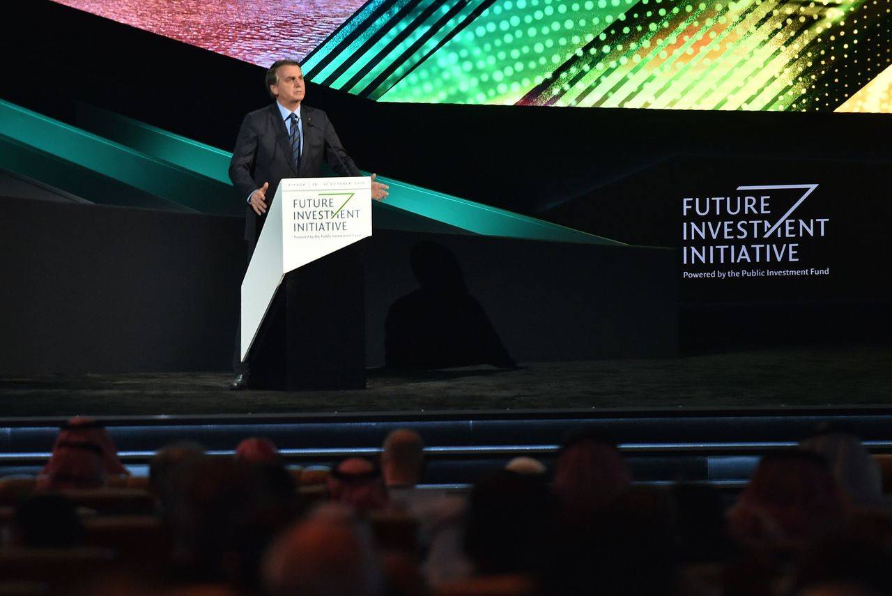 Bolsonaro fez um discurso de 20 minutos sobre sua gestão e as reformas que está promovendo. Depois, respondeu perguntas da organização e da plateia. A mediadora, Ubna Olayan, citou que Bolsonaro poderia negociar a entrada na Opep com o governo saudita e então o presidente admitiu que gostaria de entrar. Ressaltou, porém, que precisava conversar com seus ministros.
